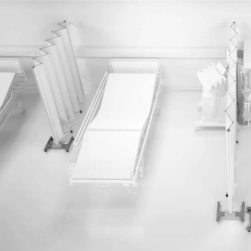 A Divisória Móvel Hospitalar BCF é fornecida com a base emborrachada em silicone, conferindo mais leveza, proteção e segurança ao produto.