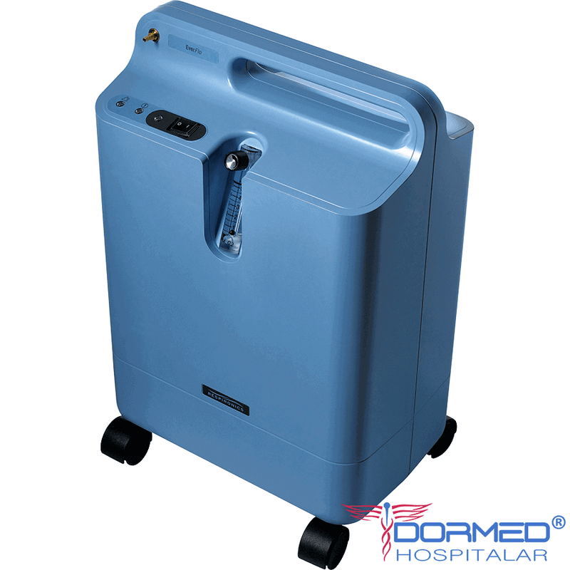 Concentrador de Oxigênio 220V 5L Everflo - PhilipsAté hoje, todos os concentradores de oxigênios são muito similares – pesados, volumosos, barulhentos, ou requerem manutenção frequente. EverFlo da Respironics é um concentrador único que oferece o que os cuidadores querem e o que os pacientes merecem.Leve para facilitar o transporte: O concentrador EverFlo pesa somente 15 kg, o que reduz os custos com armazenamento e envio e também o risco de lesões.Design compacto que parece o de um equipamento médico: O design ergonômico de EverFlo ocupa menos espaço e não chama atenção.A serie The Right Fit foca nas necessidades dos pacientes: EverFlo faz parte da Right Fit, um portfolio completo de produtos e programas para oxigênio, inspirado pelos pacientes e projetado para os negócios.Baixa manutenção para redução de custos: Sem necessidade de troca de filtros.Baixo consumo de energia agrada os pacientes de EverFlo:O sistema utiliza menos eletricidade e produz menos calor.Opção de indicador de oxigênio puro para maior segurança: EverFlo esta disponível com ou sem o indicador de oxigênio puro. Esse IPO (Indicador de Porcentagem de Oxigênio) mede o fluxo de oxigênio de maneira ultrassônica como indicação de pureza.Plataforma para garrafa umidificadora para uma maior flexibilidade: A plataforma é projetada para ser compatível com todos os tipos de garrafas e possui um lacre de velcro fácil de usar.Medidor de reentrância de fluxo reduz danos acidentais: Medidor de reentrância de fluxo.Cânula dupla de metal é mais resistente.Especifcações:- Dimensões: 58.4 cm H x 38.1 cm W x 24.1 cm D (23" H x 15" W x 9.5" D);- IPO (Indicador de Porcentagem de Oxigênio) níveis de alarme: Oxigênio Baixo (82%) e Oxigênio muito Baixo (70%);- Consumo médio de energia: 350 W;- Peso: 14 (31) kg (lbs);- Pressão da válvula de escape: 5.5 PSI;- Nível de ruído: 45 (normal) dB;- Umidade de funcionamento: Até 95 % de umidade relativa;- Voltagem: 220V;- Frequência de Input: 60 Hz;- Concentração de oxigênio (a 5 LPM): 93 +/- 3 %;- Fluxo de litros: 0.5-5 Litros por minuto;- Temperatura de funcionamento: 12°C até 32°C/55°F até 90°F;- Umidade de armazenamento/transporte: -34°C até 71°C (-30°F até 160°F) até 95% umidade relativa;- Altitude de funcionamento: 0 até 2286 m (0 até 7500 pés).