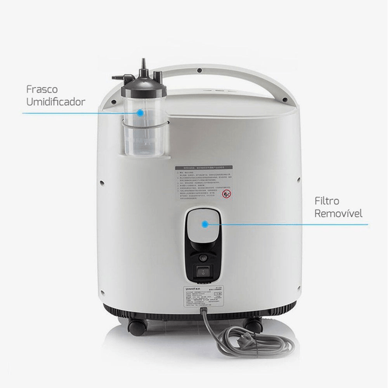 O concentrador de oxigênio é direcionado para o uso individual doméstico. Trata-se de um dispositivo operado eletronicamente que separa o oxigênio do ar do ambiente. Ele fornece alta concentração de oxigênio diretamente a você, por meio de uma cânula nasal. Estudos clínicos têm documentado que concentradores de oxigênio são terapeuticamente equivalentes a outros tipos de sistema de entrega de oxigênio.