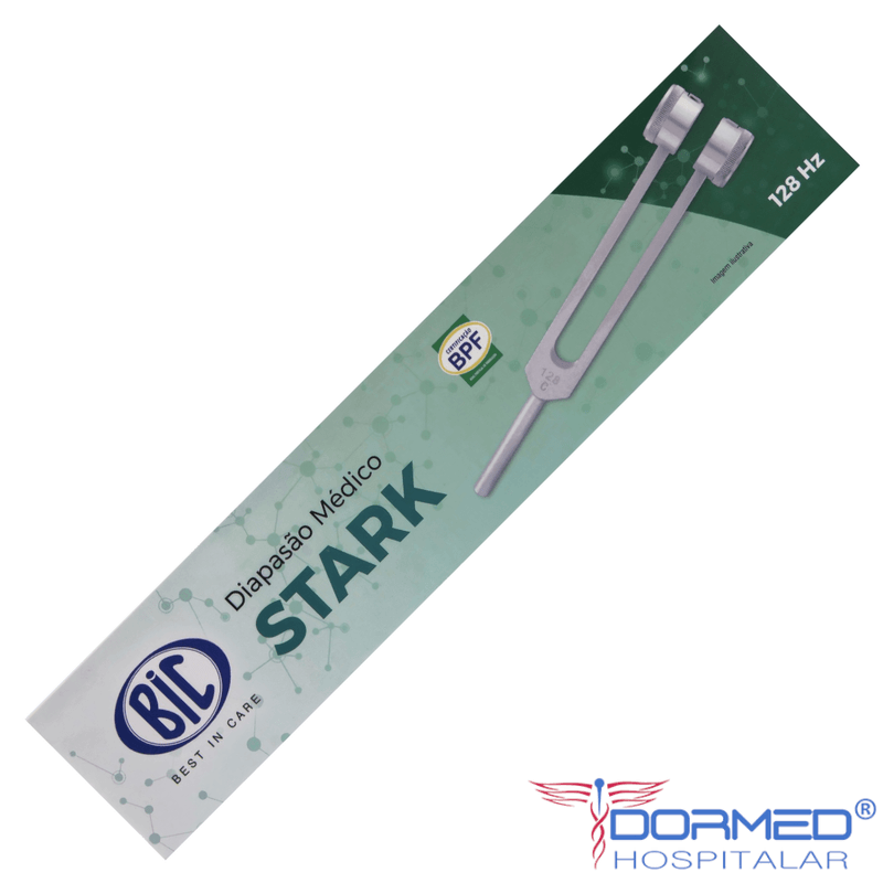 O Diapasão médico STARK BIC 128 CPS com fixador é um instrumento utilizado por profissionais da saúde na avaliação e testes audiológicos na verificação de perda auditiva. O diapasão serve como fonte condutora para a transmissão dos sons por via aérea e via óssea e pode ajudar a direcionar o diagnostico nos casos de lesão do sistema auditivo, tanto relativo ao local quanto à causa da lesão.