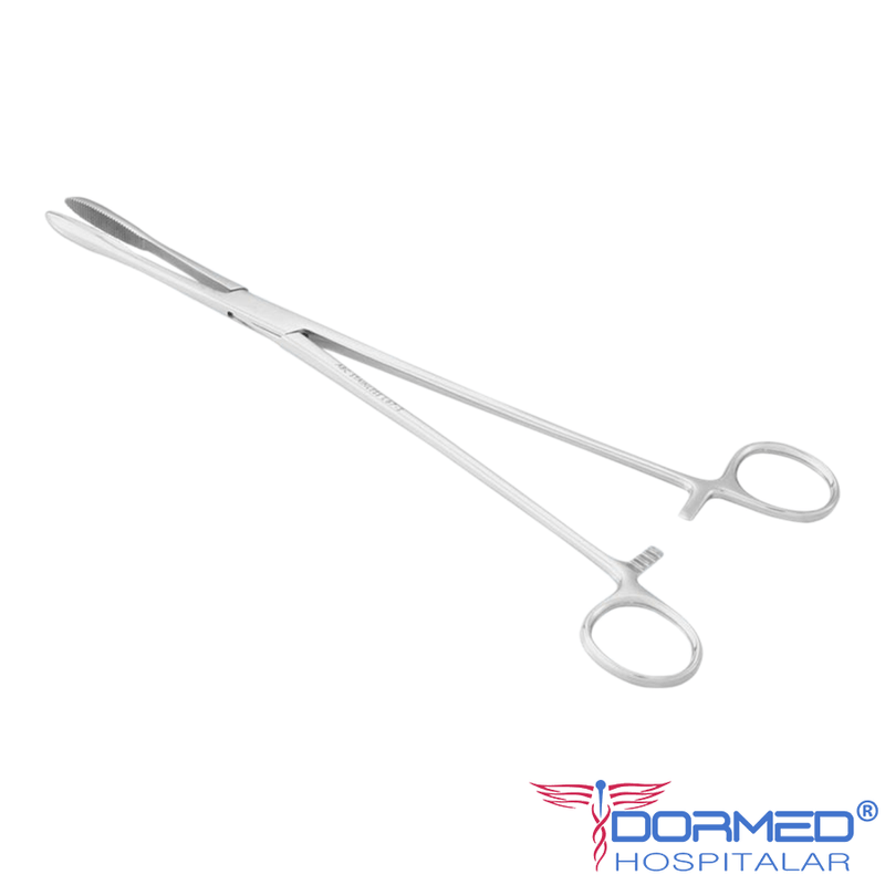 Pinça Collin para Curativo Uterino 25cm - ABC- Material: Produto Confeccionado em Aço Inoxidável Cirúrgicos;- Embalagem: Plástica individual, constando os dados de identificação, procedência e rastreabilidade;- Marca: ABC;- Fabricante: ABC INSTRUMENTOS CIRÚRGICOS;- Garantia: 10 anos contra defeitos de fabricação;- Certificações: Fabricado de acordo com Padrões Internacionais de Qualidade, Normas da ABNT, CE;-Â REG MS: 10304850055.