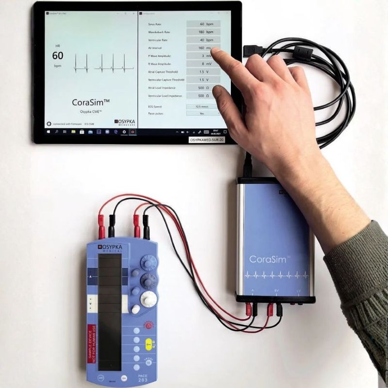O CoraSim® OSYPKA é um simulador cardíaco interativo, desenvolvido para treinamentos práticos e seguros com marcapassos temporários externos, permitindo que médicos e profissionais de saúde se familiarizem com todas as funções do marcapasso sem colocar pacientes em risco.